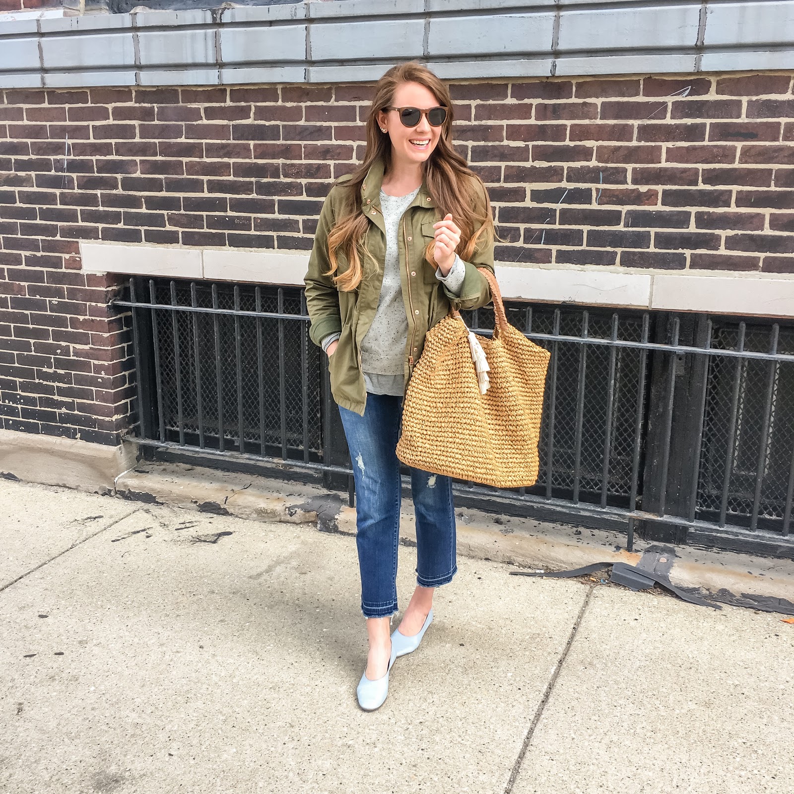 Panda bamboo sunglasses [similar]  //  Cashmere sweater [exact only $100]  //  Tunic tee [exact under $20]  //  Release hem jeans [similar]  //  Everlane Day Glove flats c/o [exact]  //  Straw tote c/o [exact]  //  Ear crawlers [exact - my fav, these are fun too